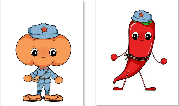 上戏创意学院师生还从“红米饭南瓜汤”等井冈山地区流传的红色歌曲中获得启发,设计了“小南瓜”“小辣椒”两个虚拟讲解员形象,并将红军服装元素融入设计。“小南瓜”的草鞋设计,则源自于团队在井冈山教育基地体验的“编草鞋”课程。这两个形象将进一步结合AR等技术,用于井冈山红色故事的讲述。