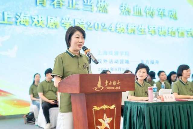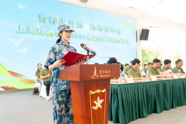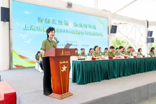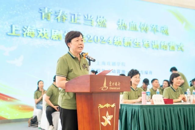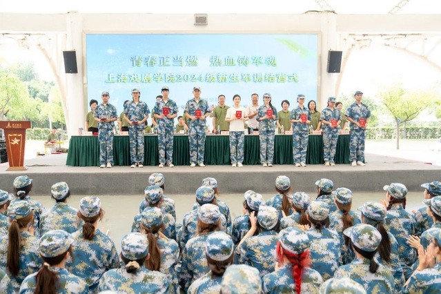 结营仪式上,校党委副书记、副院长徐咏向东方绿舟营地赠送锦旗,并代表学校向全体承训官兵和坚守在军训一线的老师们表示感谢。她表示,在上戏军训的过程中,军事与艺术和谐交融,军事训练与校本课程连贯衔接,既锻炼体魄、磨练意志,也启迪思考、浸润心灵,必将激励同学们在守正创新、奋发有为中焕发青春的绚丽光彩。
