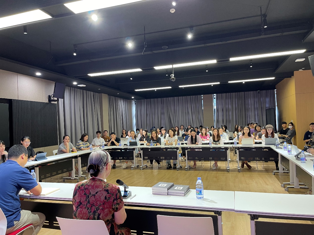 接下来,来自各年级各专业方向的硕士、博士研究生纷纷向徐棻先生请教,就不同戏曲剧种创作、历史剧创作及跨文化改编等方面提出相关问题。关于不同戏曲剧种的创作,徐棻先生以《田姐与庄周》为例,分享了自己的创作心得。徐棻先生谈到,她想要打破二元化的人物形象,通过展现人物的丰富内心来表现人的复杂性,为戏曲注入新的血液。因此,她将重点放在女主人公田姐身上,充分表现人物内心的挣扎。而到了《庄周试妻》,她更多是为演员写戏,让晋剧演员谢涛得以充分施展自己的才华,便将重点从田姐转向庄周,但剧作的思想内涵并没有改变。徐棻先生还分享到,自己走上编剧道路,离不开对于话剧、戏曲的热爱与频繁接触。她指出,青年编剧应多多了解学习戏曲与话剧,积累到一定程度后便可发现个中规律;在初期创作中可以多多借鉴、改编经典作品,并从中挖掘出自己的见解与感受。