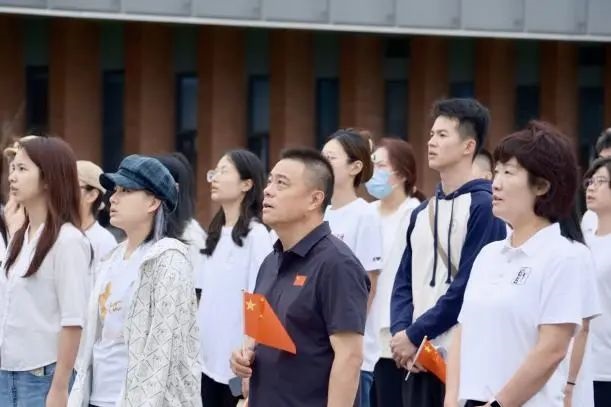迈着铿锵有力的步伐,上戏旗手护卫着鲜红的五星红旗走向升旗台。全体人员庄严地行注目礼,齐声高唱国歌,共同见证五星红旗冉冉升起,由衷地祝福祖国繁荣昌盛。