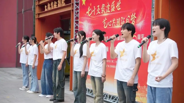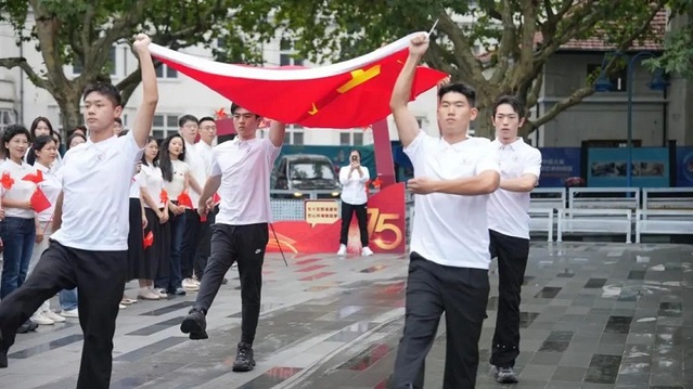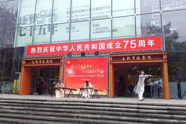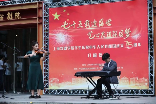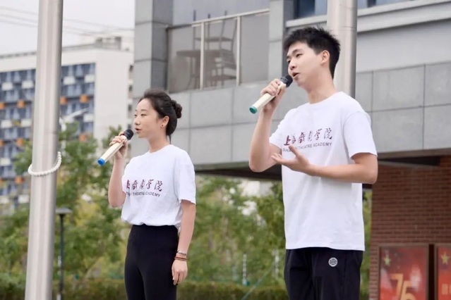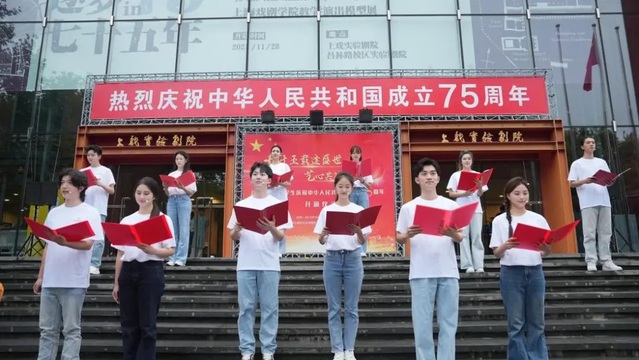 与此同时,在团市委举办的上海市青少年庆祝中华人民共和国成立75周年升国旗主题活动上,上戏表演系(含音乐剧中心)音乐剧专业师生、电影学院戎珈慧同学与全市大中小学生代表齐聚在中共一大纪念馆一大广场,带来了“申声不息 告白祖国”经典联唱和主题宣讲《青春为中国式现代化挺膺担当》,以极大的感染力发出了当代青年强国有我的时代强音。(供稿:学工部、团委 编辑:榕树)