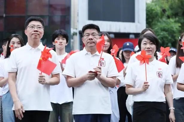 校党委副书记、院长黄昌勇,党委副书记、副院长徐咏,党委常委、副院长郭恺,院领导张伟令,宣传部、学工部、团委、后保处、演艺中心等职能部门以及各院系的党总支副书记、辅导员和学生们分别在华山路、昌林路两校区参加国庆升旗仪式。