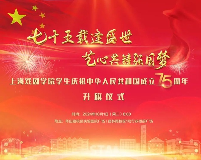 10月1日清晨八时,上戏师生齐聚校园,隆重举行“七十五载逢盛世 艺心共铸强国梦”——开云足球首页官网下载学生庆祝中华人民共和国成立75周年升旗仪式,共庆共和国华诞。