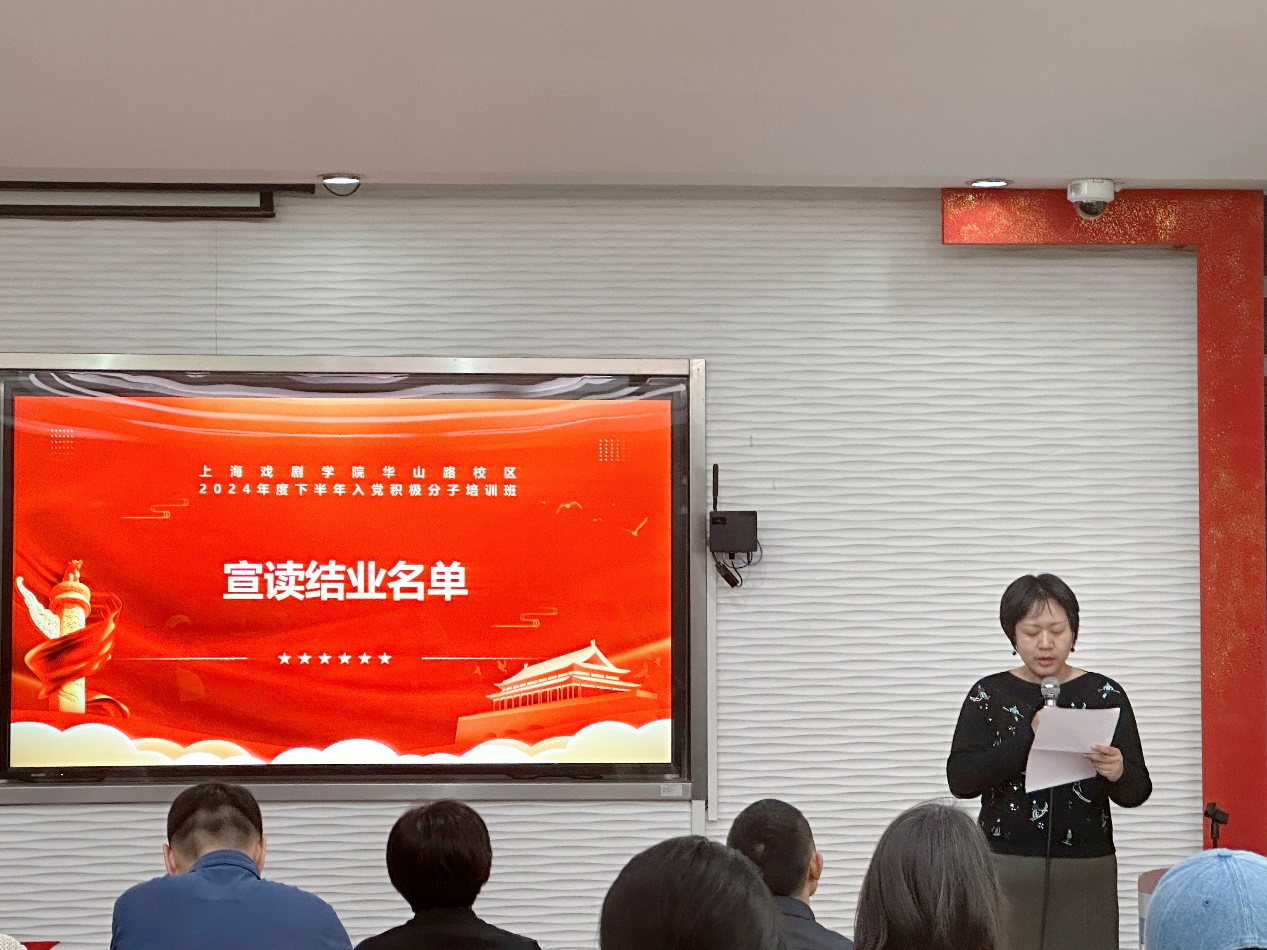 为深入学习习近平新时代中国特色社会主义思想,践行习近平文化思想,扎实做好新时代党员发展工作,表演系党总支、导演系党总支、戏文系党总支和舞美系党总支近期开展2024年下半年入党积极分子培训班。2024年10月17日中午,华山路校区(四院系)2024年下半年入党积极分子培训班在红楼209教室顺利举行结业仪式。参加本次结业仪式的有开云足球首页官网下载党委副书记胡敏,党委组织部部长、人事处处长、党委教师工作部部长刘春友,党委组织部副部长、党委组织员曹颖,导演系党总支书记尹悦蓉、表演系党总支副书记朱锋、舞美系党总支副书记孙蕾、四院系辅导员老师和27名入党积极分子,结业仪式由戏文系党总支副书记陈莹主持。