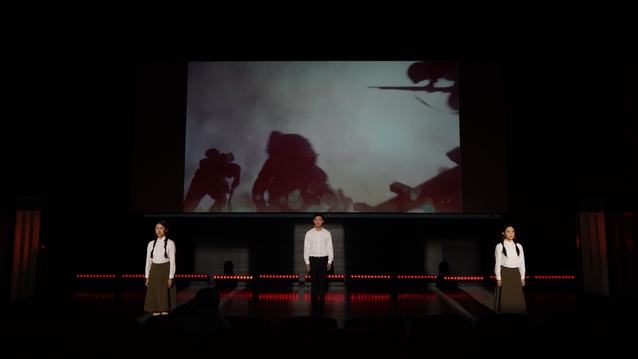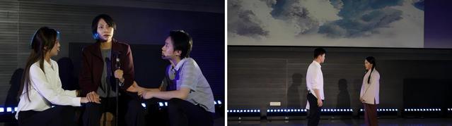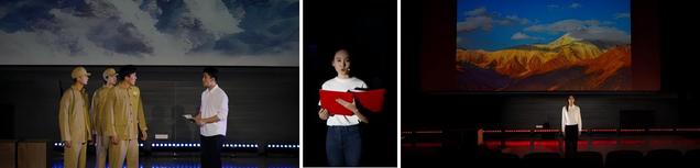 本次无障碍戏剧是为盲人朋友特别定制的“演诵篇”,通过调整表演与朗诵的时长比例,让盲人朋友们能够“听”懂戏剧、“声”临其境。演出包含《我歌与我哥》《永不消逝的声音》《悟空的黑悟空》《雪山寄》和《沧浪一生》五个故事,在三位青年大学生讨论如何举办情景剧大赛的故事框架下串联呈现。《青春家国》讲述了中国不同历史时代下,青年人的抉择与勇气,让上海的盲人朋友听到了关于青春与家国的不朽颂歌,通过一系列红色人物勇毅抉择的故事,鼓舞着残障人群的心灵世界。