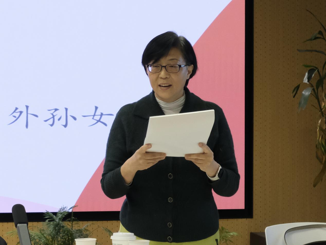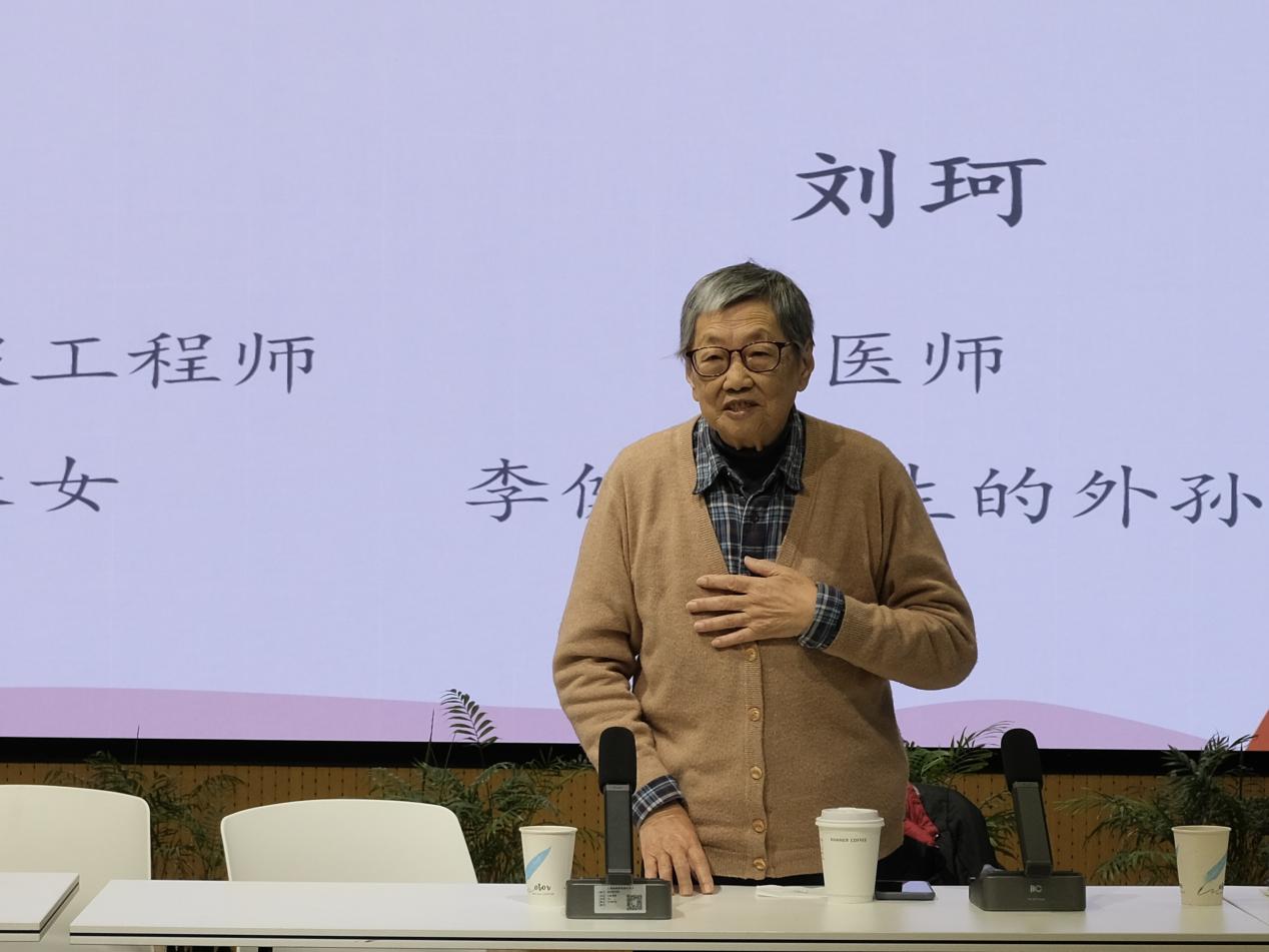 随后,由李维音老师分享莅会感受。她满怀深情地回忆了与父亲相处的点点滴滴,并分享了编纂父亲文集过程中的心得体会,让大家更加深入地了解李健吾先生的学术世界和精神内涵。她深深感受到上戏后人对创业者和过去的历史的尊重。这次和上戏人的会面,成为她们生活中的一件值得记忆的大事。令她真切地感到快乐与感动!李维音老师的发言真挚感人,在场的每一个人都为之动容。