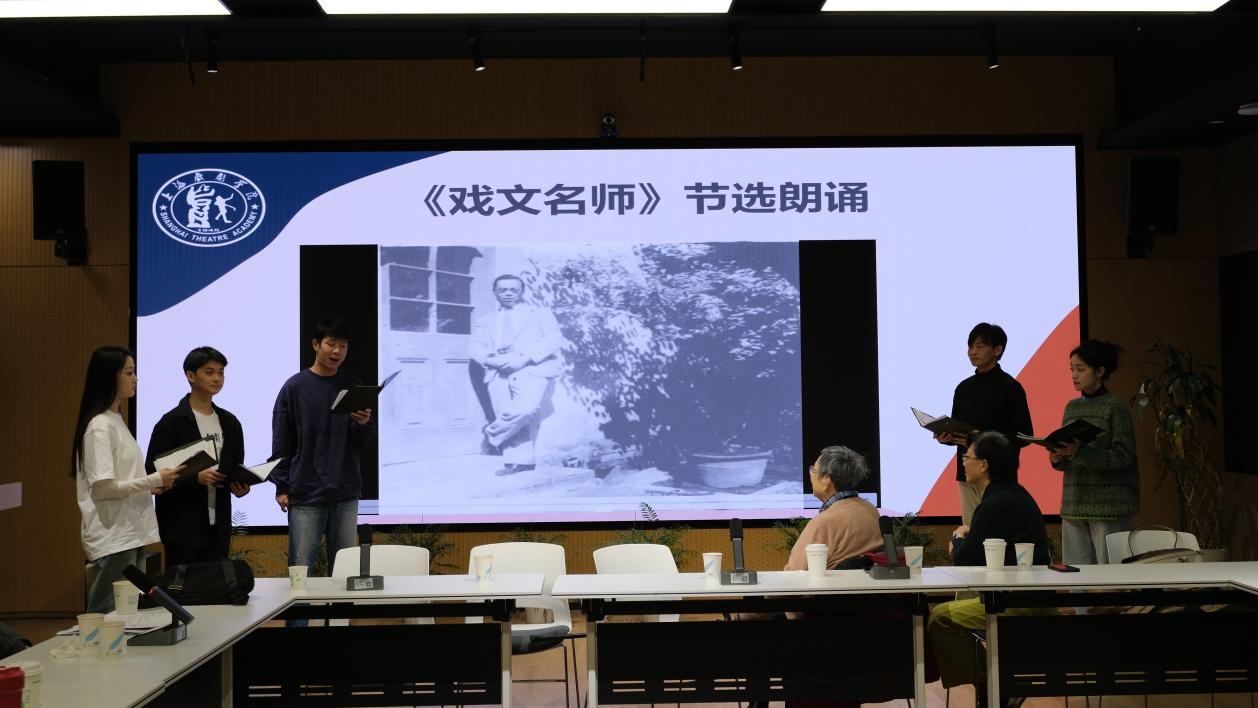 在《戏文名师》节选朗诵环节,戏文系学生深情朗诵了《上戏学生回忆中的李健吾先生》,通过学生的视角展现了李健吾先生的师者风范和人格魅力。接着播放了此前戏文系《曙光里的上戏》演出片段,再现了李健吾先生在1949年上海解放前,亲赴“台尔蒙”为参与护校运动的学生开设《哈姆雷特》讲座的珍贵瞬间,让人仿佛穿越时空,回到了那个激情燃烧的年代。