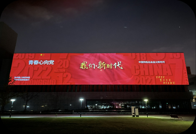 在党支部引领和推动下开展的红色文创,是专业与育人紧密结合的一种工作机制。通过红色文创的“红色文化学习—创作(设计)—制作—传播”,全过程育人模式更加成熟。建筑灯光投影秀《五星出东方》《我们•新时代》,以AR(增强现实)方式制作的党纪学习教育特别展《忠诚与背叛》等,都是以党员教师为骨干,带领学生完成的数字红色文创作品。