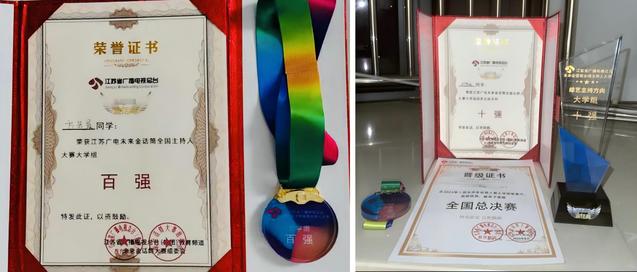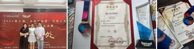 在第十届江苏广电“未来金话筒“全国主持人大赛中也获得不菲的成绩:苏佳怡获综艺赛道“亚军”;高畅获少儿赛道“亚军”;刘昕雨获影视配音赛道“季军”;贺子洪、朱丽卉、白昕鑫、刘梦燃获综艺赛道“十强”;方若晨获少儿赛道百强。这些成绩的取得,是学子们专业素养和舞台魅力的体现,也是他们对主持艺术不懈追求的结果。