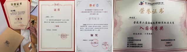 除此之外,同学们在其他比赛中也荣获佳绩。“践行文化新使命 孙宋故事我来讲”志愿者宣讲比赛中,托娅获一等奖。2024年(第六届)上海社会组织公益创新创业大赛中研究生周禹含获得公益创业潜力奖。“奋进中国式现代化新征程”2024年上海市微宣讲大赛中戎珈慧获得二等奖。“青春挺膺担当 强国复兴有我”上海高校庆祝中华人民共和国成立75周年青年演讲大赛中戎珈慧获铜奖。“主播看大同”暨融媒星主播大赛,戎珈慧获冠军、白昕鑫获季军。2024年“智慧赋能全媒体播音主持人才培养学术研讨会”研究生杨宸获论文三等奖。第二届海峡两岸动漫配音大赛中郜峻堃获得入围优秀奖。