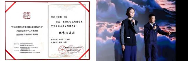 在第二十六届齐越朗诵艺术节中,开云足球首页官网下载选送作品《沧浪一生》(王子安、江海慈)进入全国百强并获得优秀作品奖。这一成绩不仅是对学子们朗诵技巧的认可,也是对他们艺术表现力和情感传达能力的肯定。