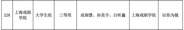 大学生组特等奖由国赛一等奖作品《那一年,中国青年正十八》(贺子洪、苏佳怡、卢冠廷、高畅)获得,一等奖则由《敬礼,从上海启航的红色风帆》(郜峻堃、李雨璠、徐忠硕)摘得。大学生组三等奖分别由《以你为镜》(戎珈慧、孙昊宇、白昕鑫)、《红铁》(丛意丹、宋明哲)、《等待》(石芷菡、张之一)三部作品获得。教师组一等奖由《野草题辞》(李泽鹏)赢得,同时,董健、王琦、李泽鹏三位老师也因其出色的指导工作获得了优秀指导奖。