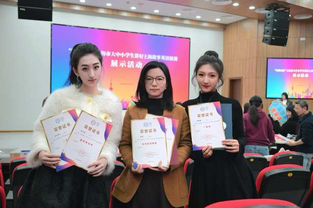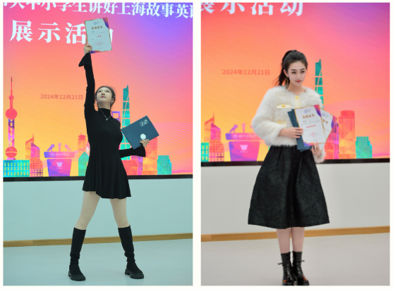 在“外教社杯”上海市大中小学生讲好上海故事英语演讲比赛中,上戏音乐剧专业24级的刘璟暄同学荣获一等奖,吕艺欣同学荣获二等奖和最佳风采奖,指导教师为卫莉老师。