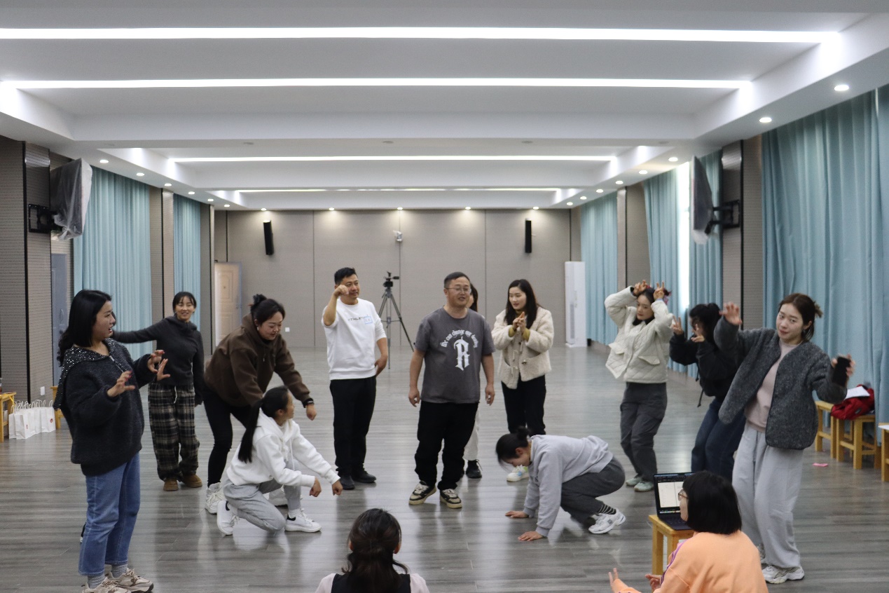 在理论研习基础上,项目组师生经过前期精心调研与备课,项目组依据前期调研与当地艺术教育的需求分析,将学员划分为6个创作单元,由戏剧教育专业教师秦子然老师、2019级人类表演学博士生黄慧、2023级人类表演学博士生谭静、2024级人类表演学博士生王超、2022级戏剧教育硕士生倪韶慧,指导老师刘子鑫、饶昊鹏老师等带领助教与参训教师,最终呈现六部风格内容不同的戏剧片段。