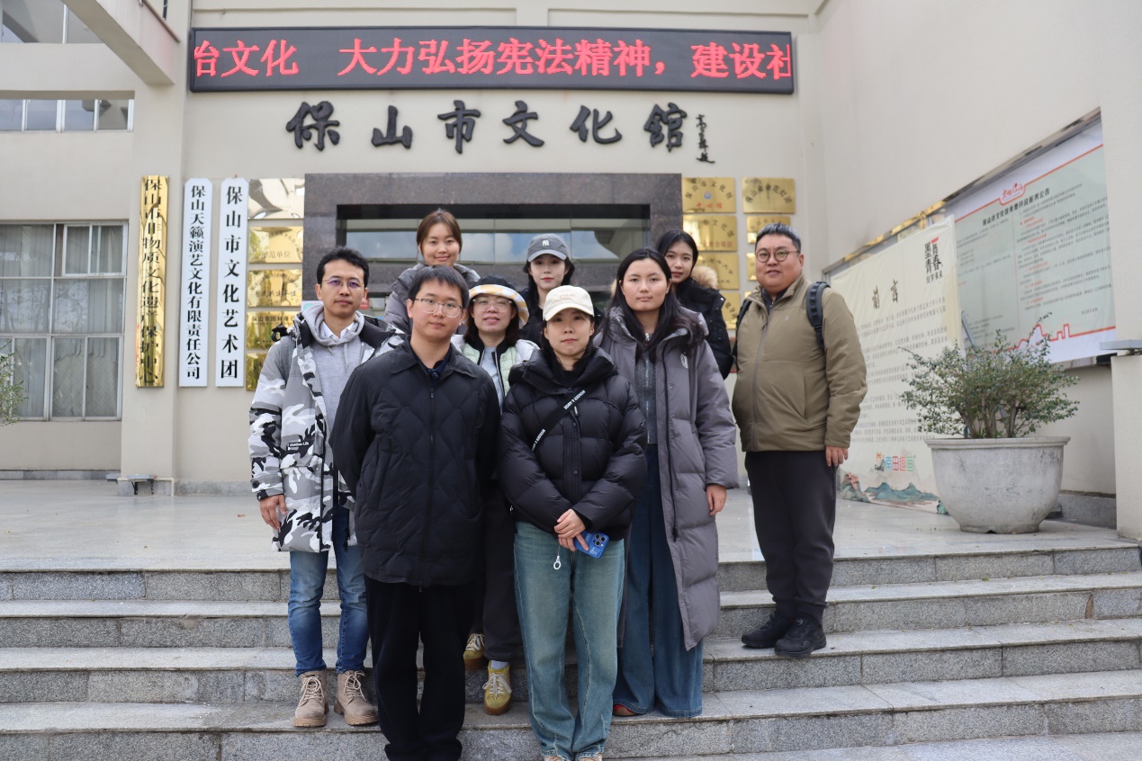 在保山市教育体育局和保山教育研究院的安排下,上戏师生们进行了地方文化采风活动。在保山博物馆和保山市文化馆,丰富的馆藏与翔实的介绍,将保山自哀牢国至今的历史发展完整呈现,让大家领略了保山深厚的历史文化底蕴。在保山小粒咖啡庄园和青枣果园,实践团感受了保山当地用咖啡等“土特产”特色品牌加快高山特色农业发展的成果,而潞江坝高黎贡山的壮美风景也给项目组成员留下了深刻的印象,为戏剧作品的创作注入了新鲜的灵感。