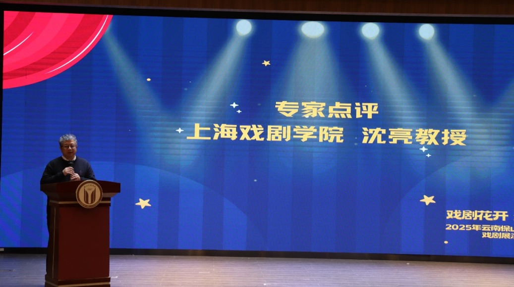 沈亮教授对各组的精彩汇报展示逐个点评,特别肯定了参训教师在各剧组协同创作机制中的突破性尝试,以及将各自艺术专业在戏剧中凸显的进阶呈现。他深切期待云南保山各区县中学选择戏剧作为必修课,“戏剧花开+”团队将与保山艺术老师联合开发戏剧课程教学内容,探索全国首发、保山首创的戏剧教育教学模式。
