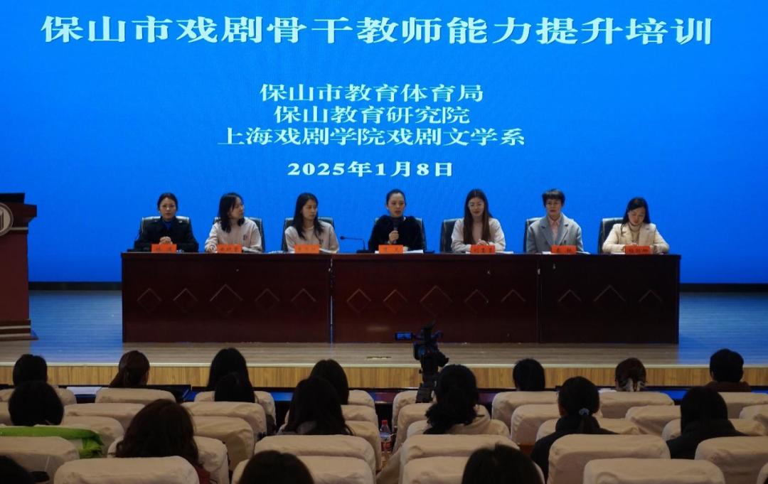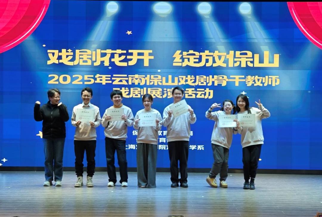 不久前,依托上海市教委文教结合项目美育工作室、学校研究生艺术考察项目,联合研究生党团支部,“戏剧花开+”团队在戏剧文学系主任、博士生导师沈亮教授、秦子然老师、刘莹莹老师的带队下,一行22人来到云南省保山市,对当地的艺术和教育进行考察,通过戏剧工作坊、戏剧片段排演、示范课程展示等环节开展戏剧教师培训。在云南省保山市教体局组织下、和保山教育研究院支持下,来自保山市的90余名美育教师共同参与。
