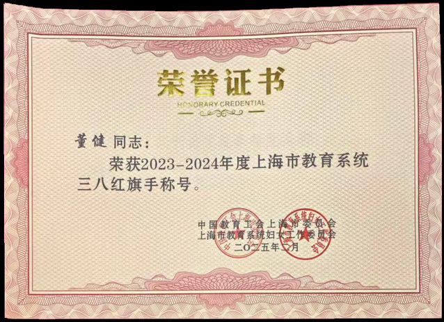 开云足球首页官网下载电影学院副院长董健教授,荣获“2023-2024年度上海市教育系统三八红旗手”称号。