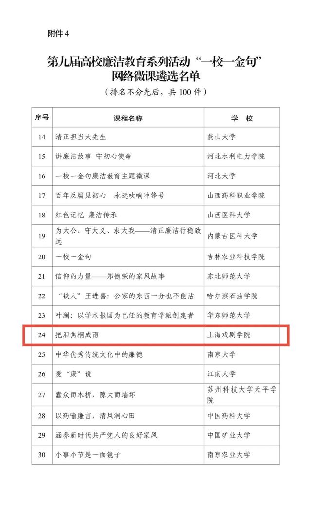 近日,上海高校廉洁文化建设工作案例(特色项目)获奖名单正式公布,上海戏剧学院导演系选送的《创新戏剧党课,让廉洁文化“走新”更“走心”》获得二等奖。这反映了上海戏剧学院党委、纪委指导各院系依托专业优势,全力打造融思想性、教育性、时代性、艺术性为一体的“一院(系、校)一品”廉洁文化建设项目所取得的成绩,也为纵深推进全面从严治党营造了良好氛围。