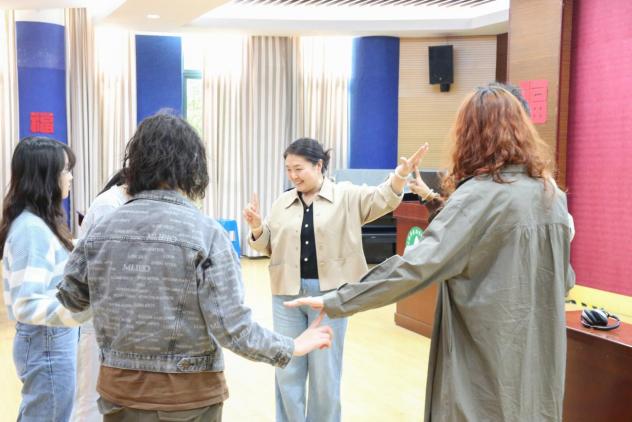 在实践环节的第二部分,为了让大家更直观地感受心理剧的魅力,校心理中心胡晨老师带领同学们体验了心理情景剧《卷途破晓》。舞台上,演员们通过沉浸式演绎,将当代学生在 “内卷” 环境下的困惑与挣扎展现得淋漓尽致;台下观众则通过互动式体验,仿佛置身剧情之中,跟随角色一同在“卷途”中寻找破晓之光。演出不仅让大家深刻体会到心理剧在心理健康教育中的独特作用,更引发了同学们对心理成长与艺术表达融合的深度思考。