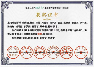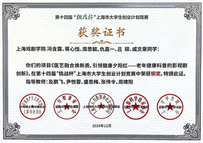 不仅戏剧作品具有深刻的思想内涵,同学们还以专业为基,还在各类创新创业比赛和项目中屡获佳绩。如《文博剧场——博物馆戏剧赋能红色“文旅+文教”新业态》项目荣获第八届中国国际“互联网+”大学生创新创业大赛上海市金奖、全国铜奖,《红色戏剧赋能城市博物馆新业态》在第十三届“挑战杯”上海市大学生创业计划竞赛中荣获银奖,《医艺融合 健康中国——我国首部老年健康科普短剧的范式创新者》荣获中国国际大学生创新大赛(2024)上海赛区金奖、全国铜奖、第十四届“挑战杯”上海市大学生创业计划竞赛铜奖,这些都彰显了先锋队强大的创作实力和创新创业能力。