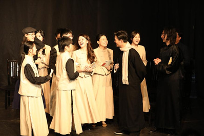 在中小学校园,队员们发挥专业优势,指导学生排演儿童剧、科普剧、校史话剧等,激发孩子们对戏剧的兴趣,培养他们的艺术素养。队员吴可走进开云足球首页官网下载附属浦东实验中学,指导排演话剧《wisdom for sale》,协助中学生品德教育开展;队员王浩哲走进七宝二中排演科普剧《北极的“碳”息:冰之守护者》,秉承科艺融合的理念,将戏剧与科普教育结合,提升戏剧作品社会价值与影响力;队员范泽昆走进上海交大附中,指导戏剧社团演绎原创话剧《永恒的钱学森》,积极弘扬科学家精神。