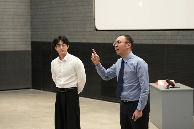 这一环节紧承前文,由教师党员与学生党员共同倾情演绎电影编导系教师雷雯编剧、孟聪导演的微剧《李默的终极抉择》。剧中主人公面临权力与初心的终极考验,将反腐倡廉主题融入戏剧冲突,通过跌宕起伏的情节张力,引发在场师生对责任担当、利益诱惑与初心坚守的深刻思考,实现了思想性、艺术性与教育性的有机统一。