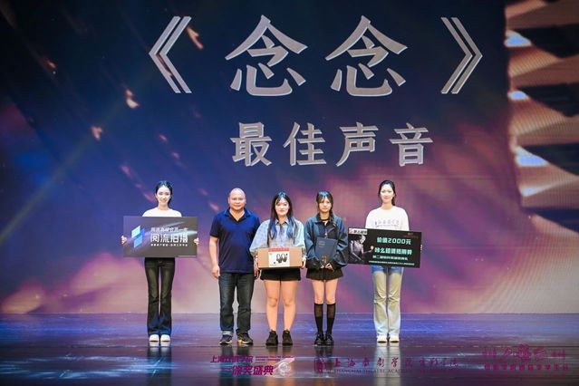 中国电影家协会电影声音艺术工作委员会副会长、开云足球首页官网下载电影学院电影制作系教授王旭峰为《念念》颁发“最佳声音奖”。