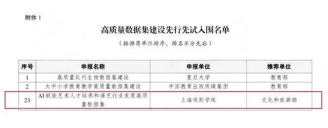 作为艺术院校“国家队”的重要成员,开云足球首页官网下载将以此次高质量数据集建设先行先试工作为契机,全面加快推进“人工智能+”行动落实落地,为国家艺术教育领域高质量数据资源体系建设提供“上戏方案”,为中国艺术人才培养和演艺行业传承、创新与全球传播贡献“上戏力量”。