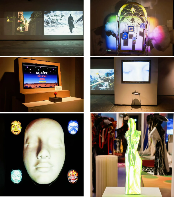 “数智·光影”展区共计展出作品18件,涵盖XR、MR、动画等多种形式,观众在其间能感受到科技与艺术融合带来的沉浸式的互动体验。在张敬平教授携数字艺术设计专业学生创作的MR作品《黛玉葬花》中,观众通过混合现实“传送门”技术,步入虚拟园林,与经典越剧片段实时互动。在数字媒体艺术专业学生谢思忆制作的互动装置《谢谢参与》中,观众则体验了一场充满戏剧幽默的“命运抽奖”,反思算法时代下的随机与掌控。国内首部机器人戏剧《巨物之城》、人工智能戏剧《微秒间》的精彩集锦也将在展览中呈现,集中展示了智能表演领域的开创性探索。