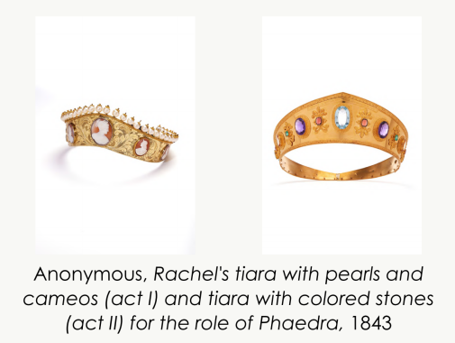 启蒙主义时期,戏剧家开始追求历史真实感:舞台布景力求贴近时代,服装设计力求复原,体现了艺术家增强观众沉浸感的追求,和演员塑造角色的自觉意识。至十九世纪,观众对舞台表现要求更高。随着考古学发现与历史意识觉醒,舞台考据与写实风格进一步发展,演员开始根据剧情更换服饰与珠宝。只不过,舞台珠宝多采用替代材质制作,皆因真品昂贵易损,然而为了追求真实,其精细制作工艺却与真品毫无二致,实现了以假乱真的艺术效果,成为营造戏剧幻觉的重要一环。