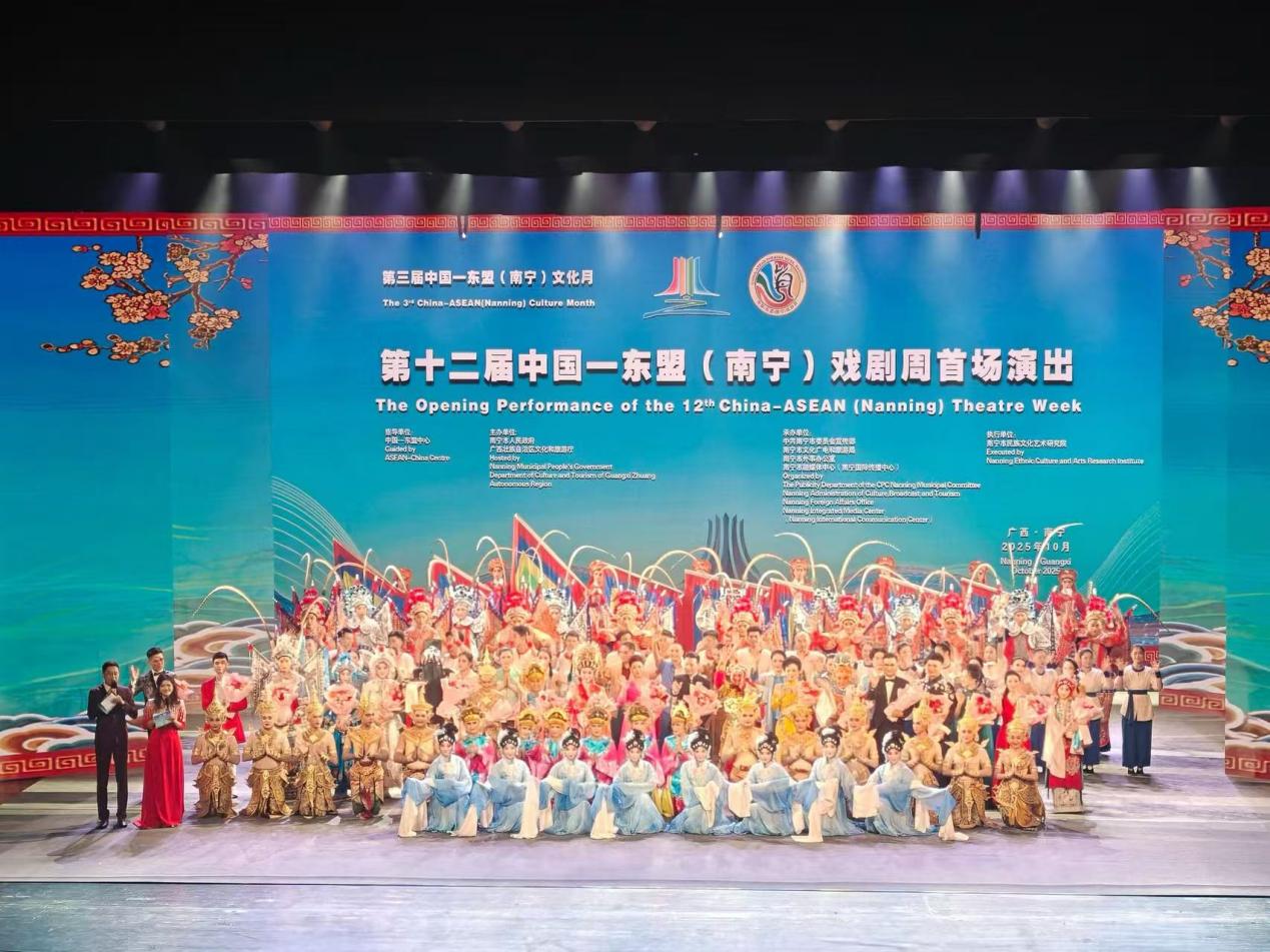 10月28日,由东盟中心指导,南宁市人民政府与广西壮族自治区文化和旅游厅共同主办的第十二届中国—东盟(南宁)戏剧周在南宁盛大开幕。来自中国与东盟各国的领导嘉宾、戏剧艺术家及爱好者齐聚一堂,共襄这场跨越山海的戏剧盛会。作为中国—东盟(南宁)文化月的重点活动之一,本届戏剧周汇聚了来自柬埔寨、印度尼西亚、马来西亚、缅甸、泰国、越南、新加坡、菲律宾等8个东盟国家的11个艺术团体,以及国内11个省(市)的29家文艺院团。活动以戏剧为桥梁,积极推动中国与东盟国家之间的人文交流与合作,助力构建更为紧密的中国—东盟命运共同体。
