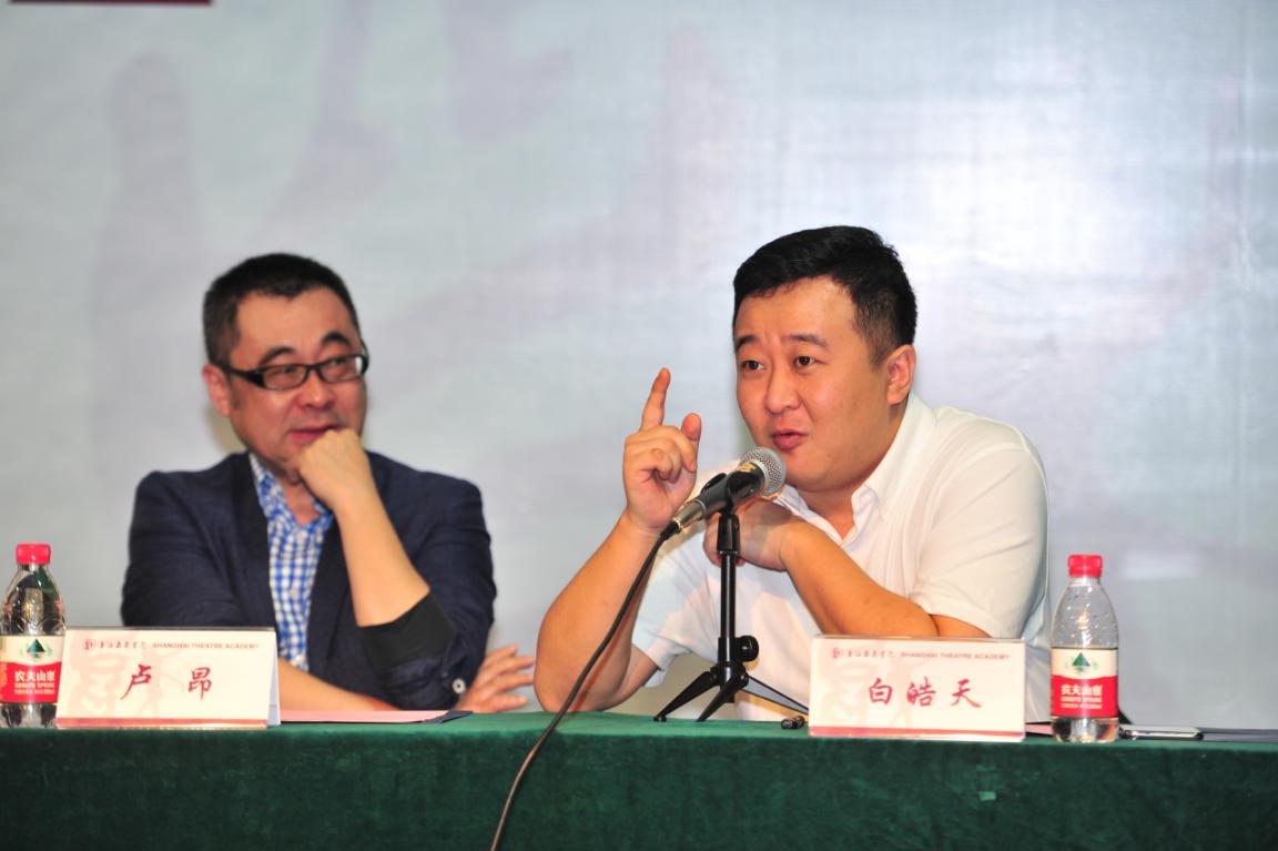然后,国家话剧院导演、上戏著名校友白皓天也进行了发言。他先是表达了对于母校的怀念和对恩师们的感谢。接着与现场的同学们分享了他在创排《谷文昌》与《共同家园》这两部话剧过程中所遇到的困难和收获的经验。最后他表示,希望上戏学子能坚持戏剧梦想,通过自己的努力,走向更高的艺术舞台。