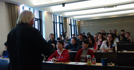 在一个半小时的讲座中,气氛活跃而热烈,克拉克先生就NIDA学院如何运作一次演出进行了生动有趣的讲解。在整个讲座过程中,我们可以很清晰的看到当今成熟艺术学院对制作管理演出上的系统流程,以及反观我们自己可以借鉴的经验和模式。讲座带给我们更多的是思考。通过交流,我们对未来的演出更加的有信心。