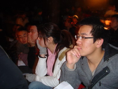 12月13日晚,导演系团总支书记章文颖、导演系系学生会宣传部长张楠,组织导演系07级班团支部在下河迷仓观看了一出由日本稀人会演出的先锋话剧《密语》。该活动是导演系学习十七大会议精神的系列活动之一,旨在开拓学生的艺术视野,接触多元的当代戏剧流派,为建设社会主义和谐新文化打下基础。