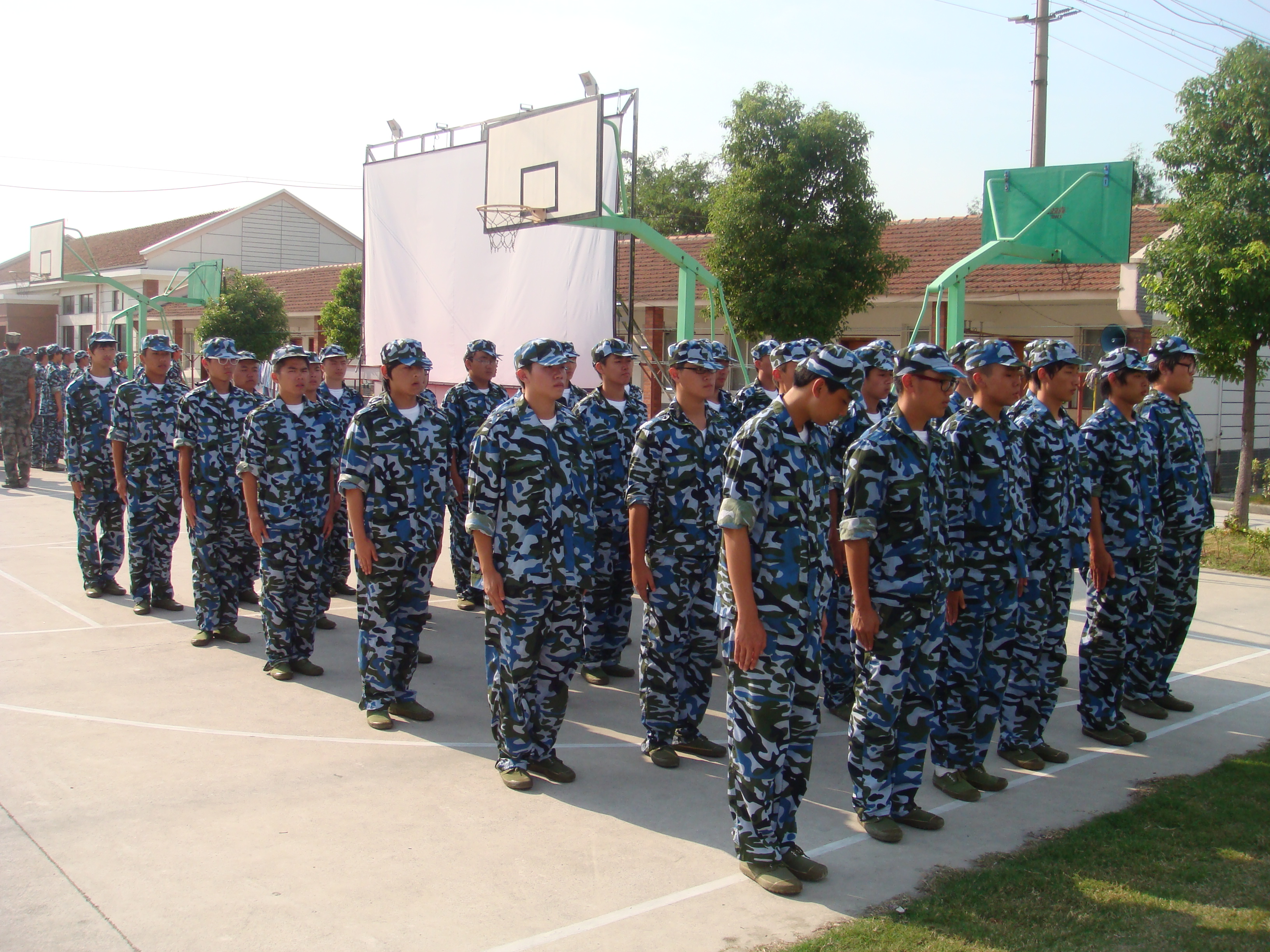男生连正在进行军姿训练