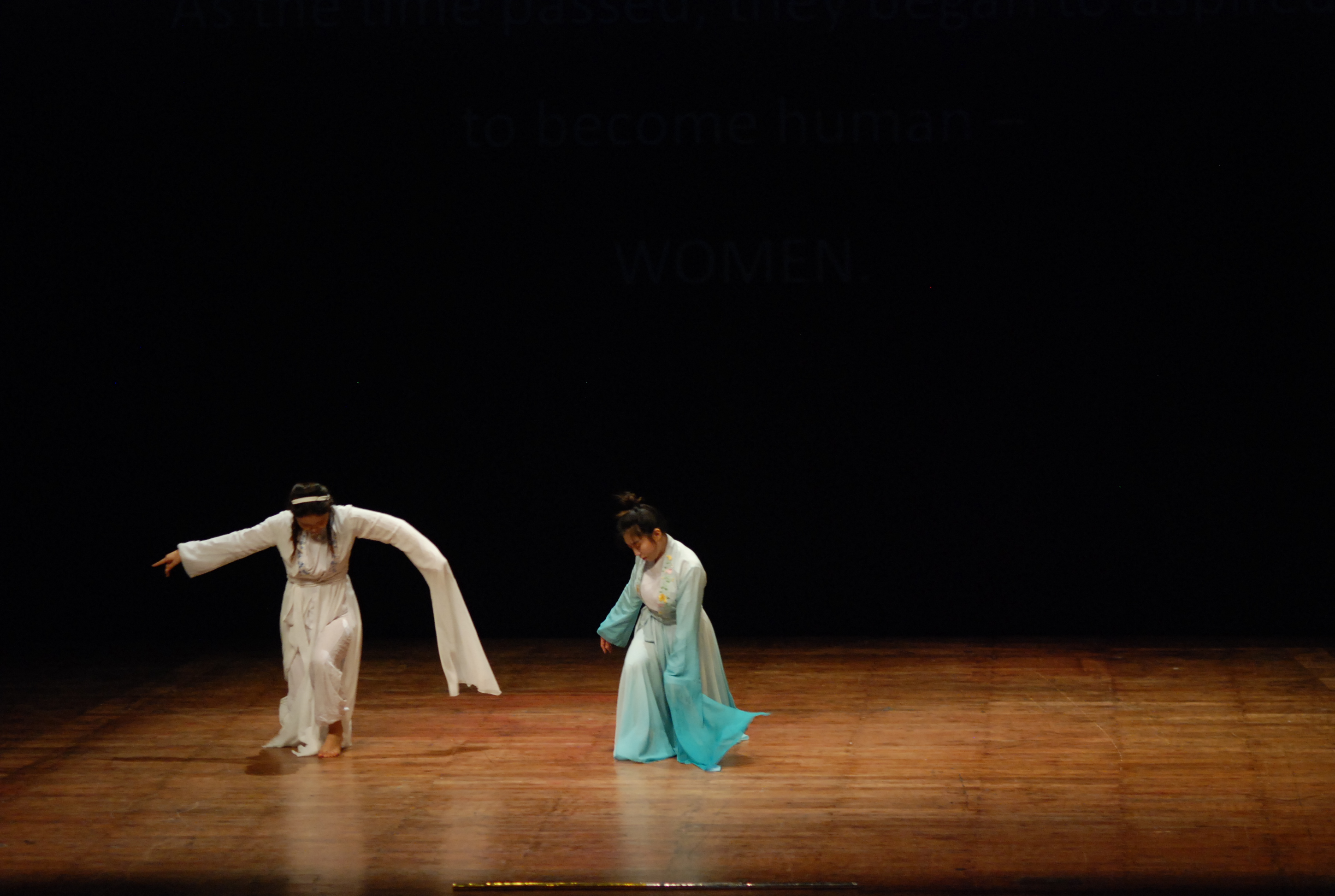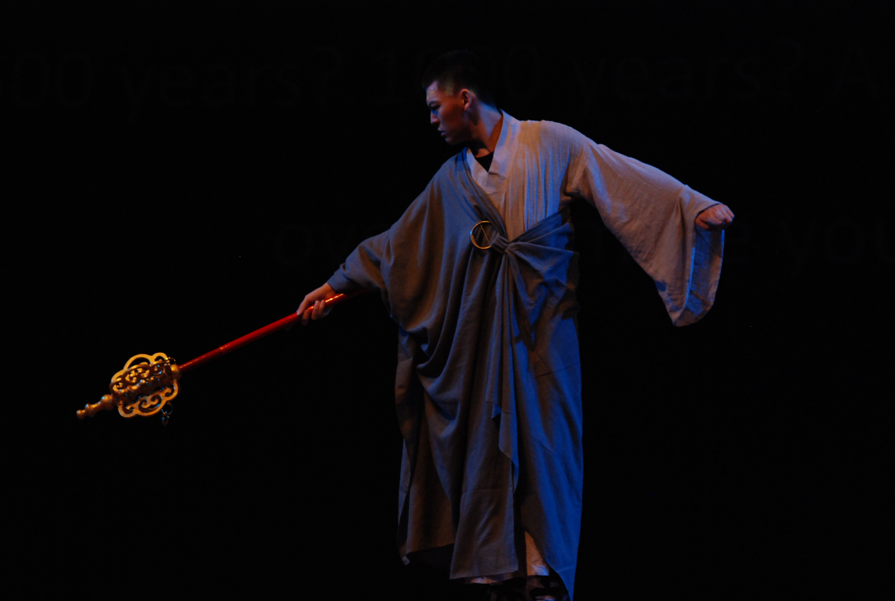 在10月22日中午,《情探》上演。这部来源自两本独立小说——《青蛇》和《悟空传》的改编故事,在周可老师和万黎明老师的指导、王雨昕和唐煜皓同学剧本整理和执导、以及包括导演在内的五位学生自导自演的合作中,成为了一出45分钟左右的较完整的作品。前半部分青蛇色诱法海,观众反响强烈,演出完后得到很多外国观众“很可爱”的反馈;而后半部分观众反应稍慢,大抵是因为文化差异造成了一些理解延迟,但在演出后照例的演后谈环节,观众表示很喜欢整部戏所呈现的视觉效果,“这是舞台上的中国超级英雄大片”,并且提出探讨:为什么要将这两个故事结合在一起?为什么呈现的是三界六道,而都是以类似人的,比如神仙、妖精的服装来展现?对此,剧组导演讲述了两本小说最开始各自独立排演,到发现其核心是在探讨共同主题——“情为何物”:妖无拘束,欲修成人,任由情欲滋长,却不知情和欲之别;人在其间,或放浪形骸或克己自律,想成仙成佛,于是立志摒除情感;神佛无欲,了无生趣,惊叹于妖界和人界的自由自在与七情六欲,抛弃神仙身份要做妖精。因此合二为一,变成了轮回相扣的命运主题。而将布景削弱,简化到以布为景,展现场景从天宫到西湖畔到金山寺到花果山。五位演员迅速换装,简化服装点缀,强调通过肢体身段及声音塑造不同人物身份,让故事能被读懂并且有可观性。类似人是因为我们选择将人作为基准,妖比人少拘束,佛比人多定力,而人在两道间徘徊,演员也是人类,所以不可避免我们以人的基础出发。很多观众反映:通过这个可以了解到很多中国的元素,小朋友也能看懂,能了解中国的故事,未来演出方向很丰富。