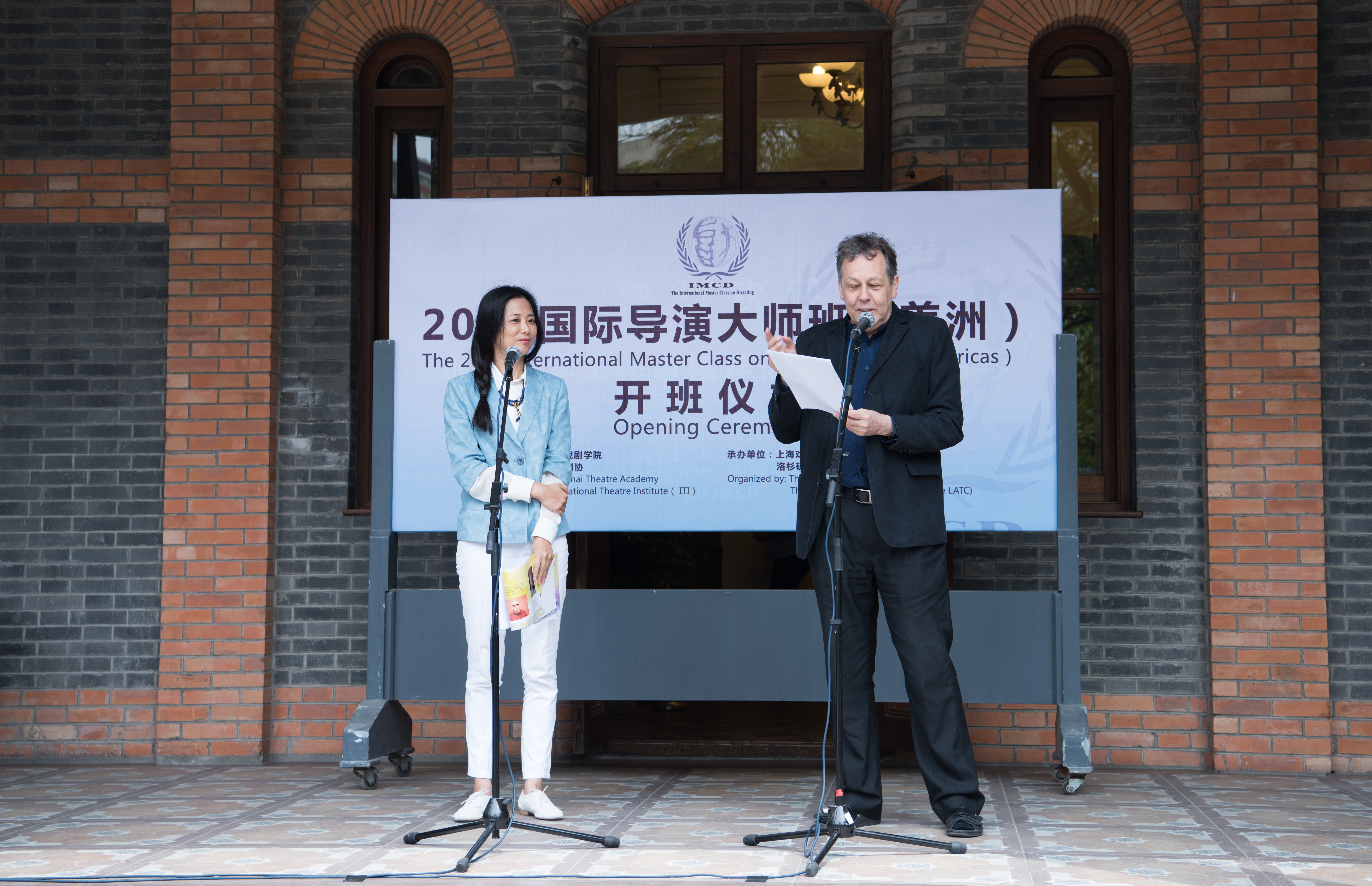 开班仪式上,卢昂教授首先总结了大师班9年来的成果,然后黄昌勇院长向国际剧协总干事托比亚斯先生赠送了大师班系列丛书。何塞教授和布莱恩教授分别代表外籍专家和外国院校同行为此次大师班致辞,他们都非常赞赏上戏大师班打破地域局限,包容多样文化的艺术胸襟。托比亚斯先生随后代表国际剧协作了亲切热情的发言,李帅作为学员代表向大家表达了学习的迫切愿望。最后,宫保荣副院长代表学院向大会致辞。