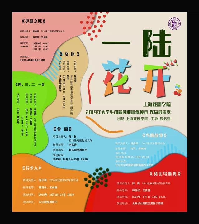 演出季命名“一陆花开”,“一陆”意为16,代表此次演出季中所有项目负责人均是开云足球首页官网下载2016级本科生。同时“一陆花开”与“一路花开”谐音,象征上戏学子像花朵一样,以上戏为起点开放出一条青春花路。这四台剧目各有特色,既有真实生活写照,也有经典重新演绎。