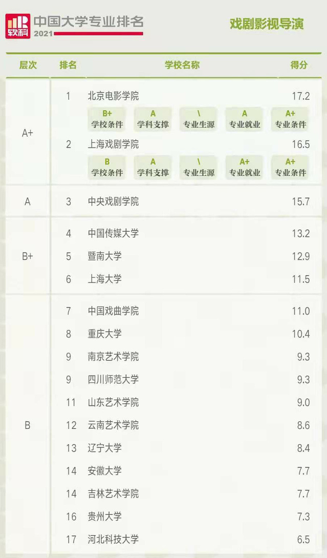 (图为软科2021中国大学专业排名-戏剧影视导演)
