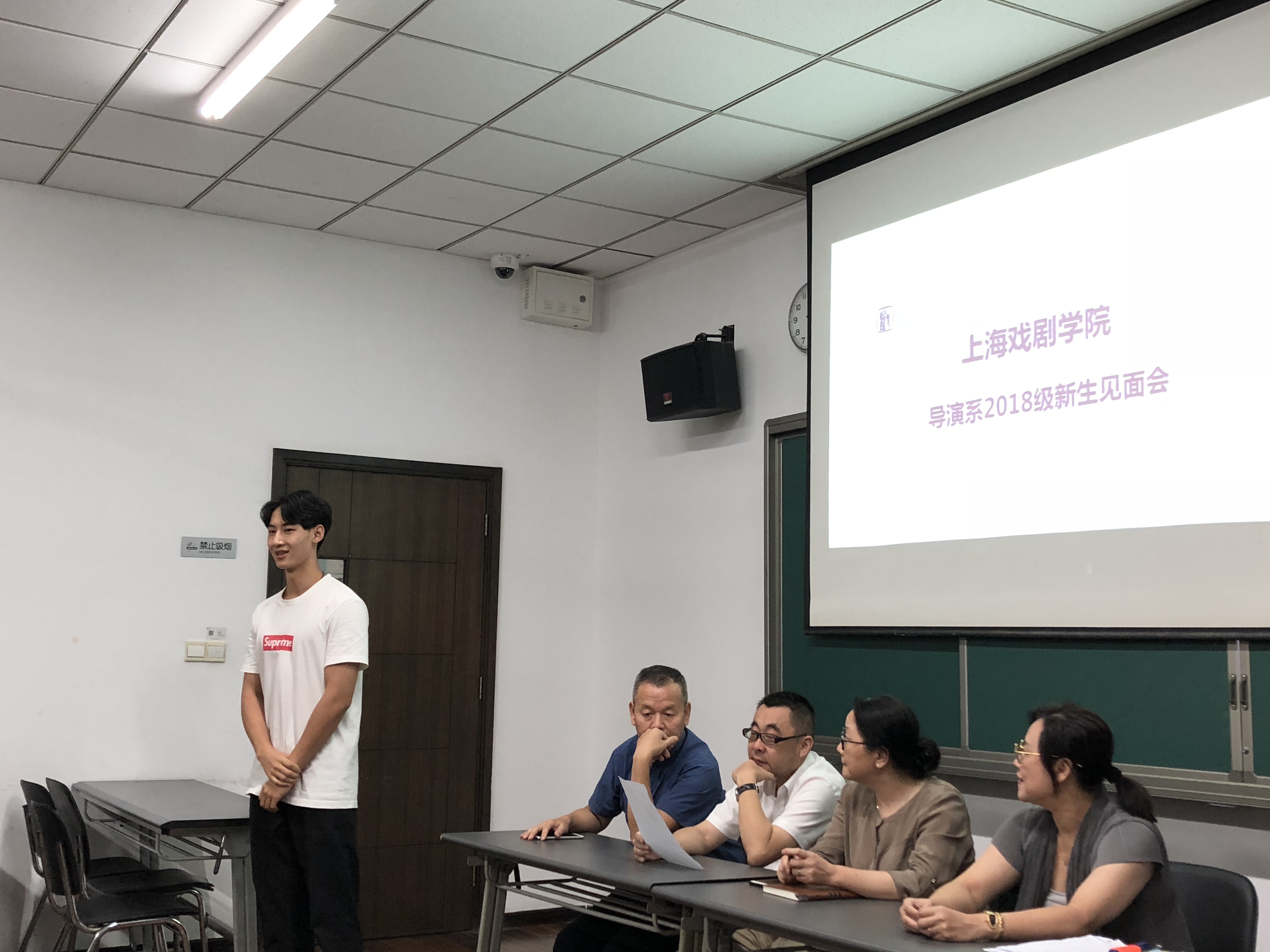 结束忙碌了一天的报道后,在辅导员夏帅的带领下,同学与家长及系部主任、老师,齐聚红楼207,进行了18级导演系的见面会。