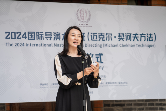 安徽省黄梅戏剧院党总支副书记、副院长,梅花奖获得者,国家一级演员何云老师作为大师班学员代表首先发言。她对导演大师班14届的坚持表示敬佩,上戏导演系国际导演大师班在进一步提升中国戏剧导演艺术修养,拓宽艺术眼界方面成效显著,同时也为全国艺术院团、艺术高校优秀人才,及艺术创业者搭建了专业的提升文化交流、合作共建良好平台。她作为一名戏曲演员,希望在这次学习中,尝试探索出不同门类戏剧表演间可串联、可借鉴、可融合的艺术元素,并将在这里的所学所想所悟融入到今后艺术创作中,为推动中华传统文化的创新发展作出积极的努力。