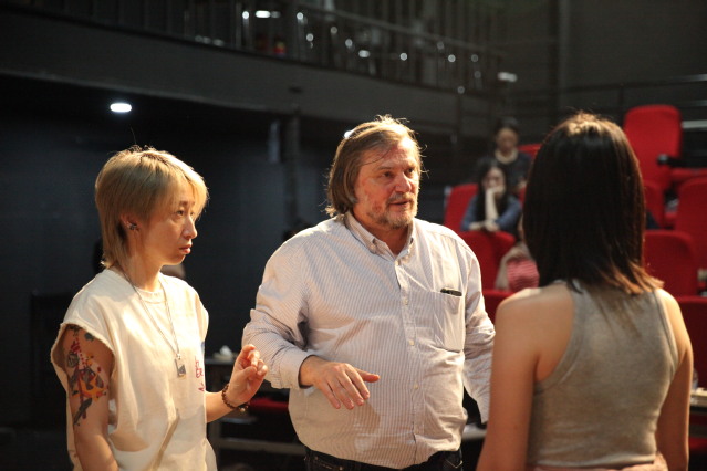 在第三天的课程里,同学们展现出极高的积极性,近三十个精彩的习作在黑匣子上演。拜切尔教授对同学们富有创意和深意的想法给予了高度肯定,而他也强调,为了进一步提升作品的质量,同学们需要对剧本人物进行更为深刻的分析,并对导演内容的表达有更加精确的把握。同时,他再次明确提出行动和真实的表演在舞台上的重要性。