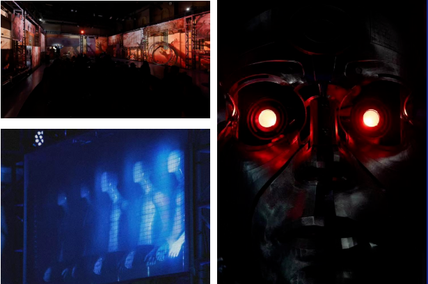 机器人制造、未来世界景象的多媒体设计,音效与演员的表演相互呼应,增强了故事的视觉冲击力,使观众仿佛置身于罗素姆机器人工厂之中,切身感受剧情的发展与张力。