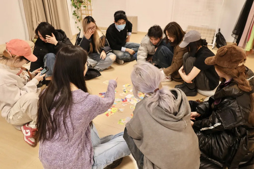 一张张卡牌成为了同学们表达自我的独特媒介,“可爱的泡芙”、“爱笑的橙子”、“社牛的香蕉”、“孤独的网友”、“生病的榨汁机”们围圈欢笑。