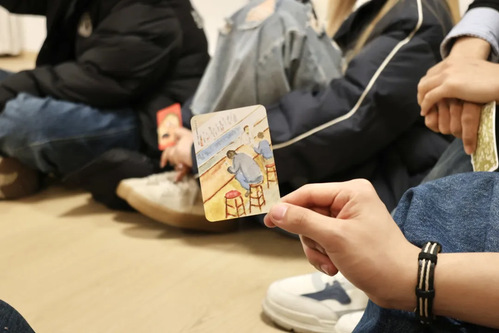 在“导演第一镜”环节,同学们通过独特的卡牌自我介绍环节,开启了认识内在自我的大门。大家根据直觉挑选代表自己的卡牌,选取符合自我的代号,并各自阐述原因。