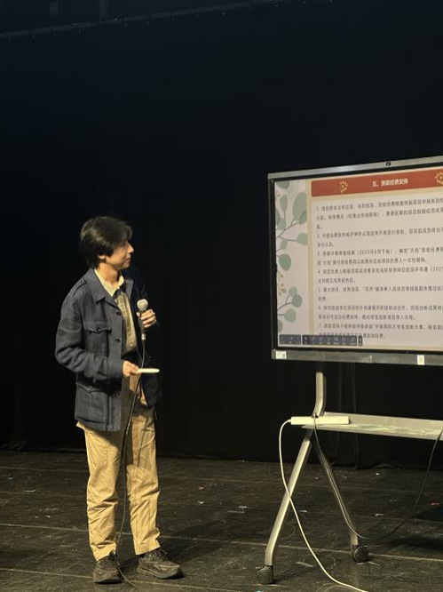 “大创、研创、扶青计划、乌镇戏剧节……这些项目不是‘遥不可及’,而是需要用‘作品意识’去争取。”导演系团总支副书记、2023级戏剧影视导演专业吕硕聚焦“项目申报”,为在场学子带来实用干货。他从申报思路、材料准备到作品创作,逐一拆解关键环节。吕硕还鼓励大家以“未来戏剧工作者”的标准要求自己,牢牢抓住每一次创作机会。