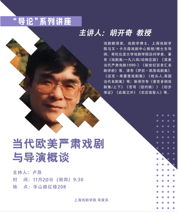 “导论”系列讲座——胡开奇:当代欧美严肃戏剧与导演概谈