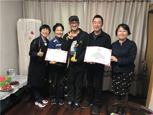 4月12日,电影电视学院书记魏东晓老师、方方老师带着“第三届金鸡百花微电影节优秀作品奖”,和中国电视艺术家协会颁发的“2017年行业电视节目评选纪录片优秀作品”的奖杯、奖状、证书,看望正在积极疗养中的13级播音和主持专业唐奕欣同学。雷雯老师和沙扬老师一同前往。