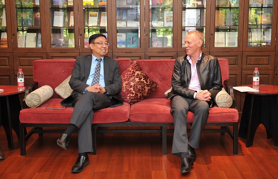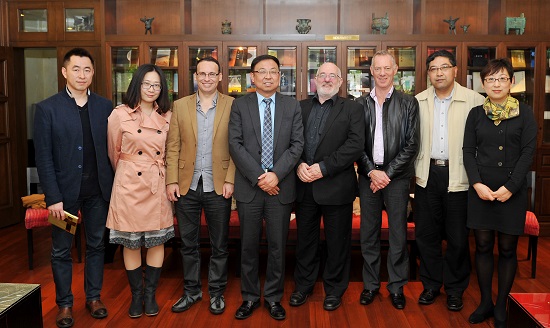 正在上海参加2014(第七届)中国新西兰电影节的新西兰奥克兰电影协会主席兼会长Pete、首映影片《永恒》的导演Alex、新西兰太平洋文化艺术交流中心主席和志耘等一行4人于4月25日访问开云足球首页官网下载。